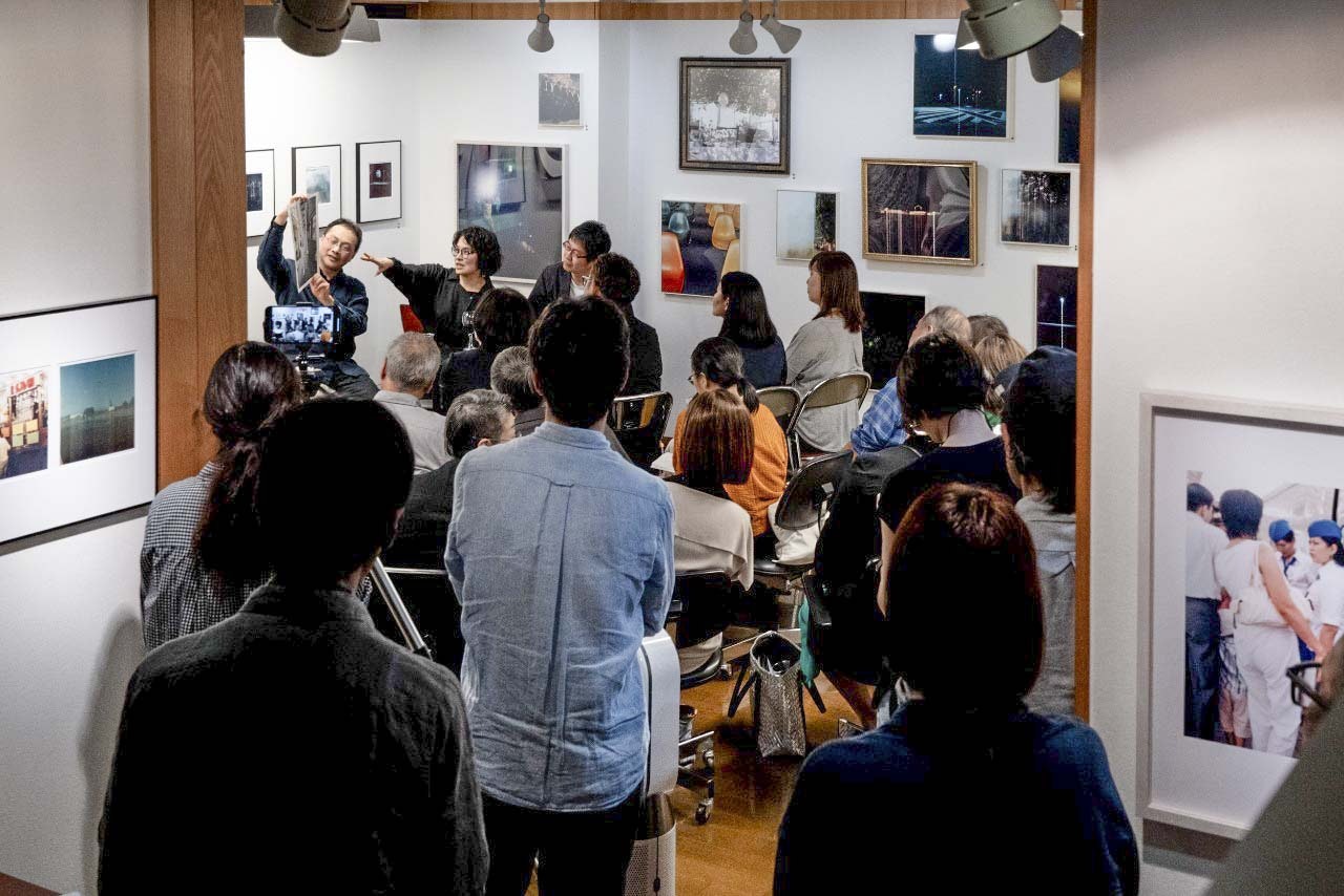 (写真はギャラリー冬青にて。映画監督の深田晃司さん、朝日新聞編集委員の石飛徳樹さんとトークショー。)